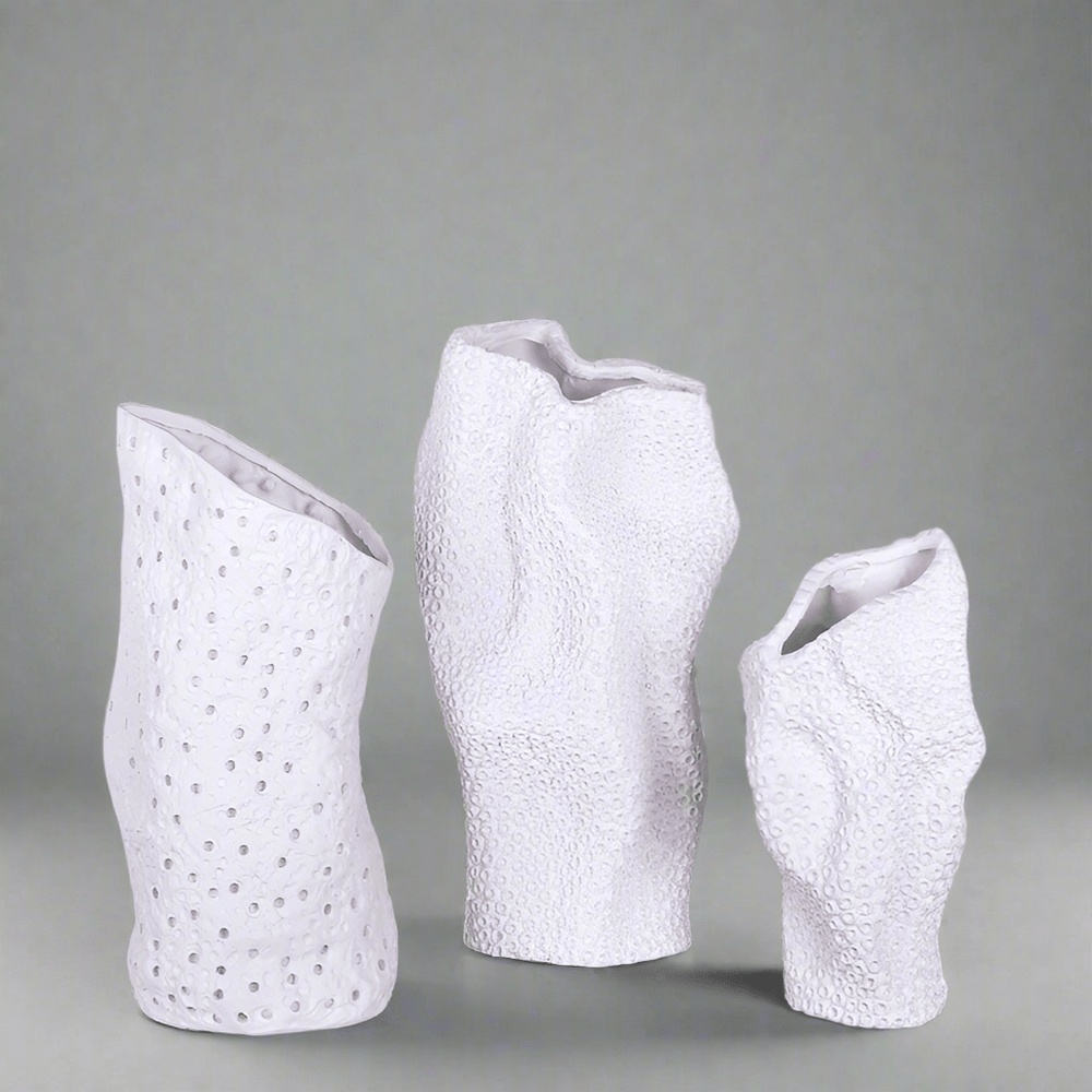 Add a touch of contemporary artistry to your space with this Modern Minimalist Textured Resin Vase. With its abstract geometric form and textured finish, it serves beautifully as both a statement décor piece and a functional vase.