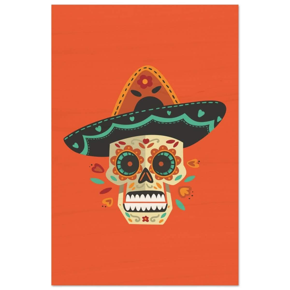 Embrace the vibrant spirit of Día de los Muertos with this stunning artwork, featuring a beautifully adorned sugar skull wearing an intricate sombrero. Inspired by the rich traditions of Mexican culture, this piece bursts with warm oranges, deep blacks, and lively turquoise accents, creating a bold contrast that brings the festive energy of the holiday to life. The detailed floral patterns, heart-shaped motifs, and delicate linework add an element of elegance, symbolizing life, love, and remembrance. Whether you’re drawn to its cultural depth or its striking aesthetic appeal, this artwork makes a statement piece for any modern or eclectic space.